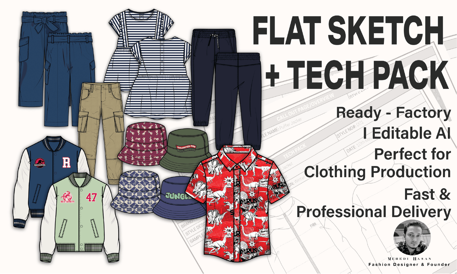 Professional Flat Sketch And Tech Pack For Clothing Production
